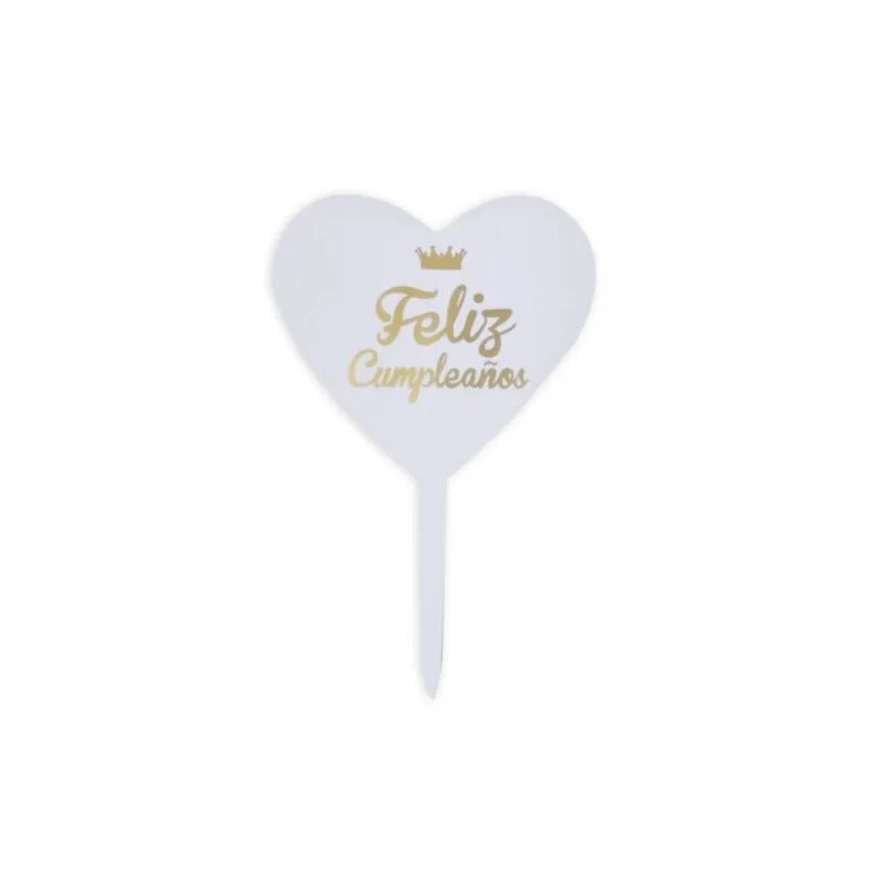 DECO ACRIL FELIZ CUMPLEAÑOS DORADO CORAZON CTP000829